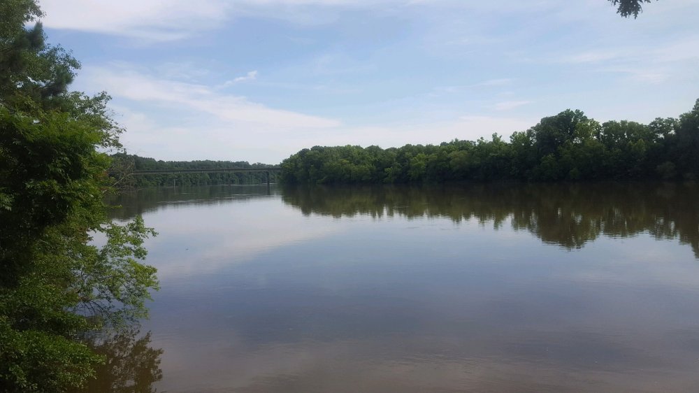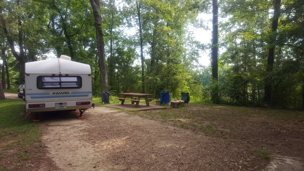 Last night we stopped at a county park campground in Bastom, Alabama, called Neal’s Landing. This campground was an unmarked almost free campground. We found it on the site https://freecampsites.net/. We had to use their directions because Google tried to take us somewhere else. That somewhere was an exercise in determination and patience for Capt. Jim as he had to turn the camper around in a tight space. He did well!